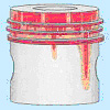 Общая информация: В этом случае масляная пленка разрушается из-за очень высокой температуры. Сначала появляется полусухое трение и отдельные места истирания. В дальнейшем, поршень в цилиндре работает полностью "всухую", из-за дополнительного нагрева в местах истирания. Задиры имеют темный цвет и сильный износ. (Рис. 1) В зависимости от причин задиры начинаются или на направляющей поверхности поршня или на головке поршня. |