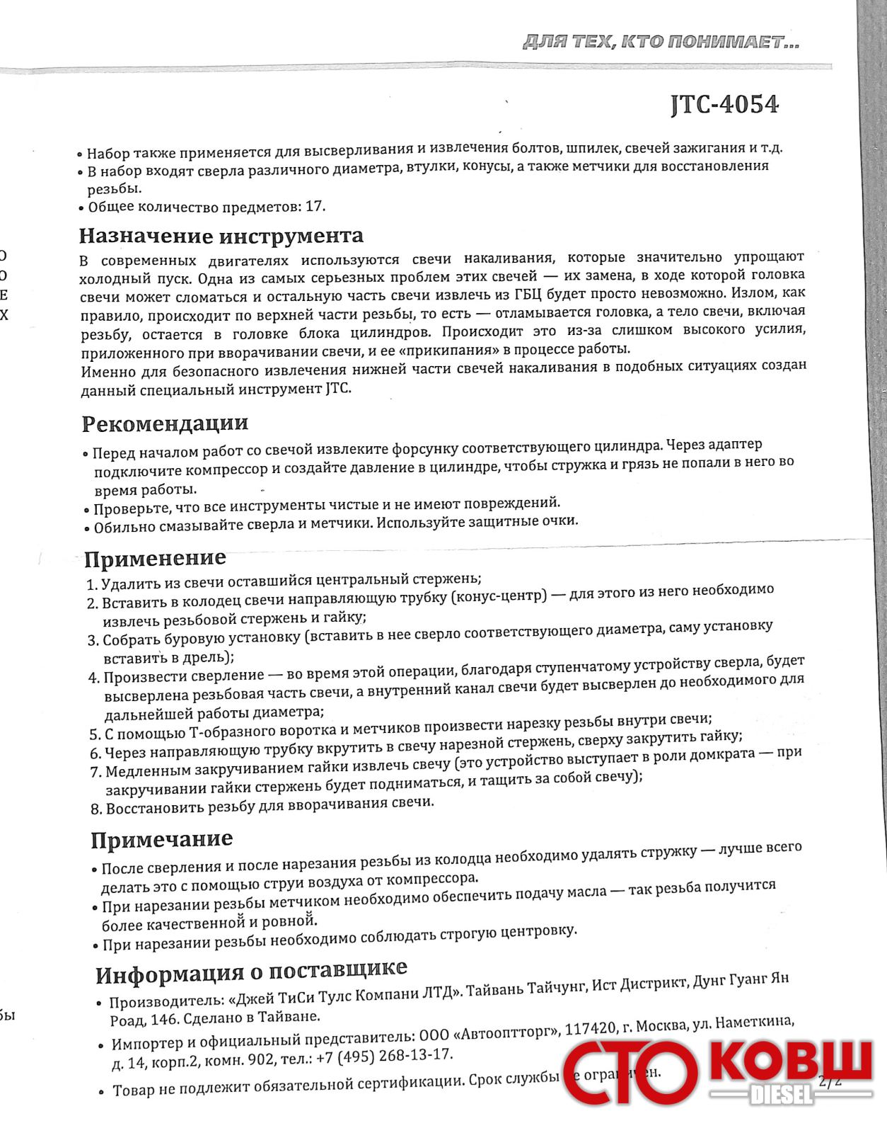 Демонтаж свечей накаливания с помощью JTC-4054.