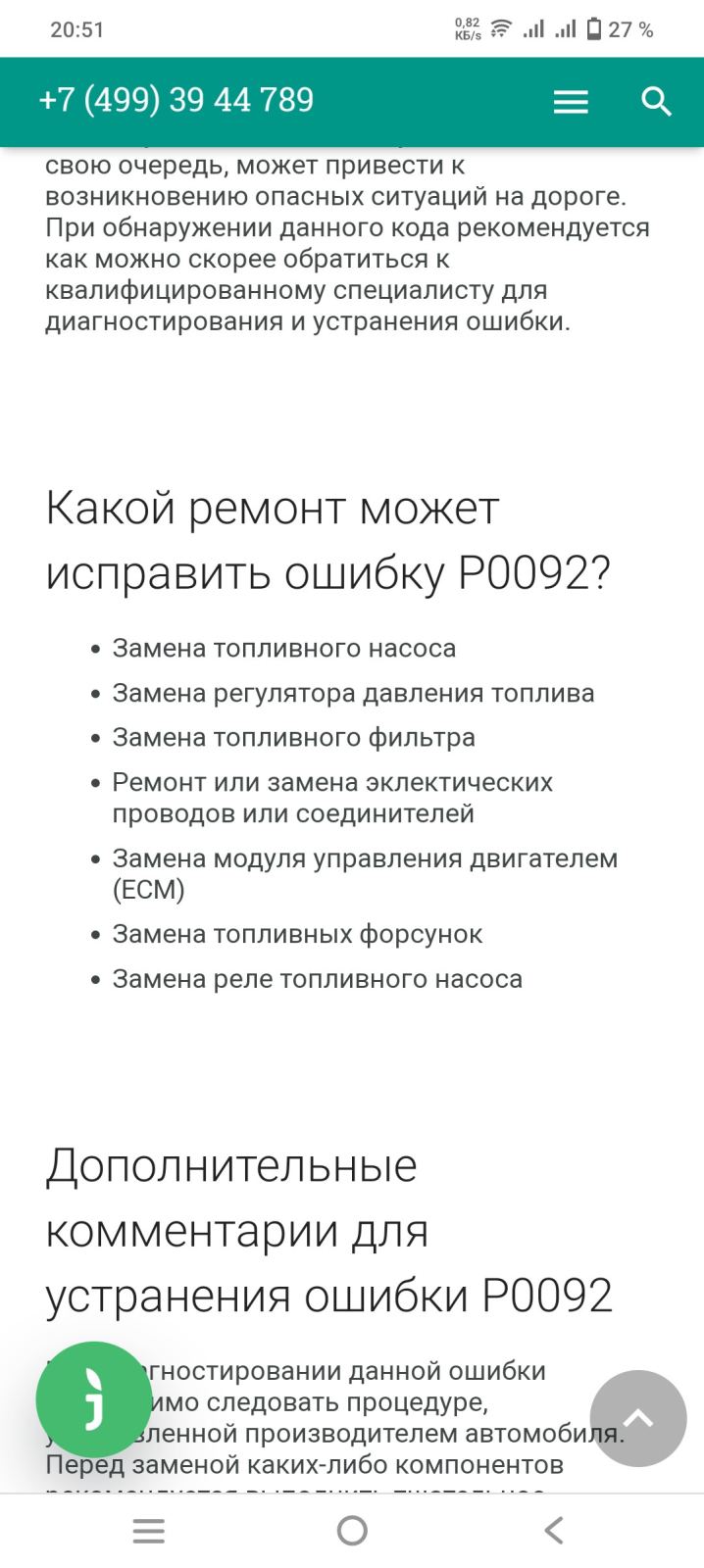 Симптомы кода P0092 могут включать: