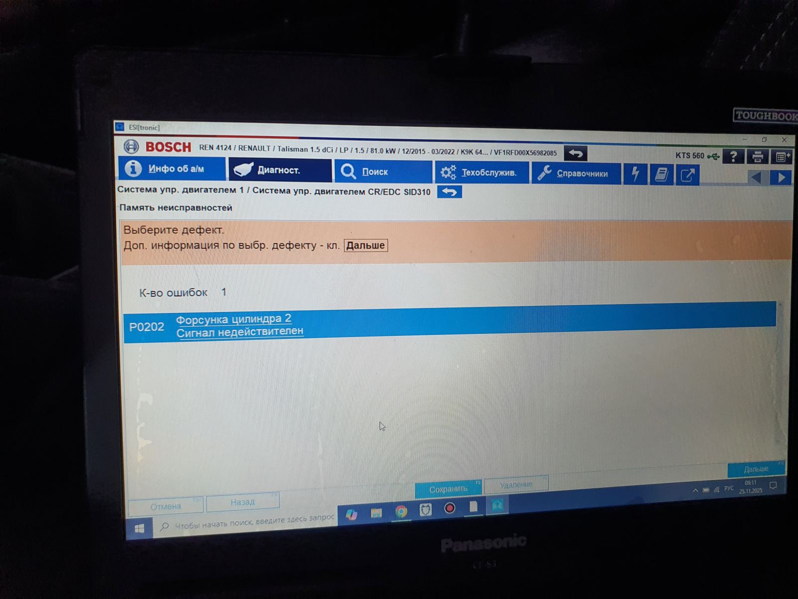 P0202 - Неисправность цепи управления форсункой №2