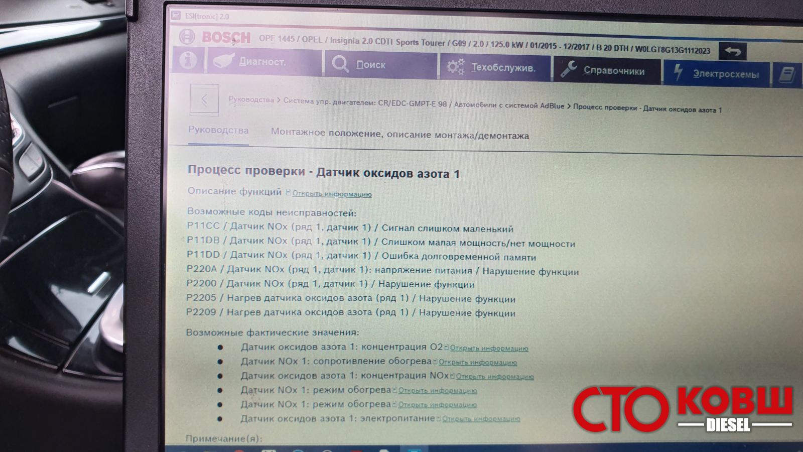 P11DB (Opel) - Текущие характеристики датчика NOx, ряд 1, датчик 1/ Слишком малая мощность/ нет мощности