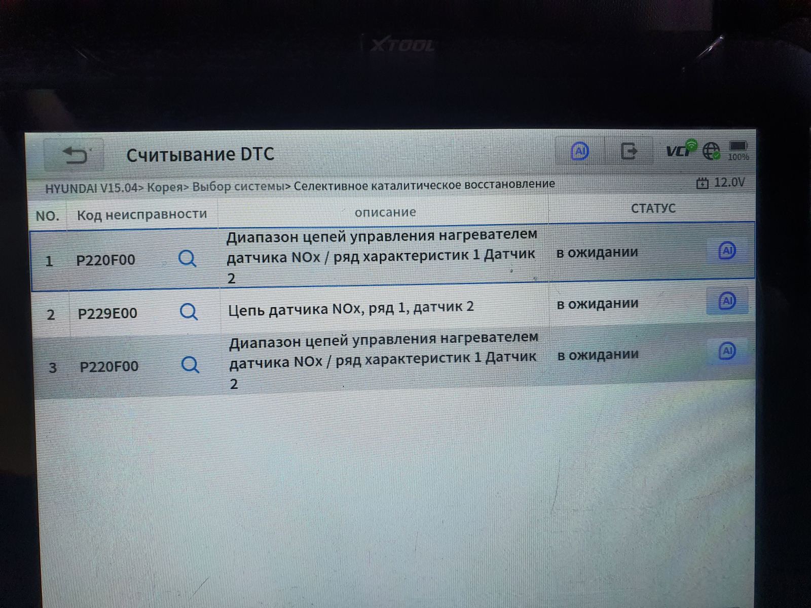 P2BAE (Hyundai) - Оксиды азота (NOx), предел превышен - мониторинг контроля NOx